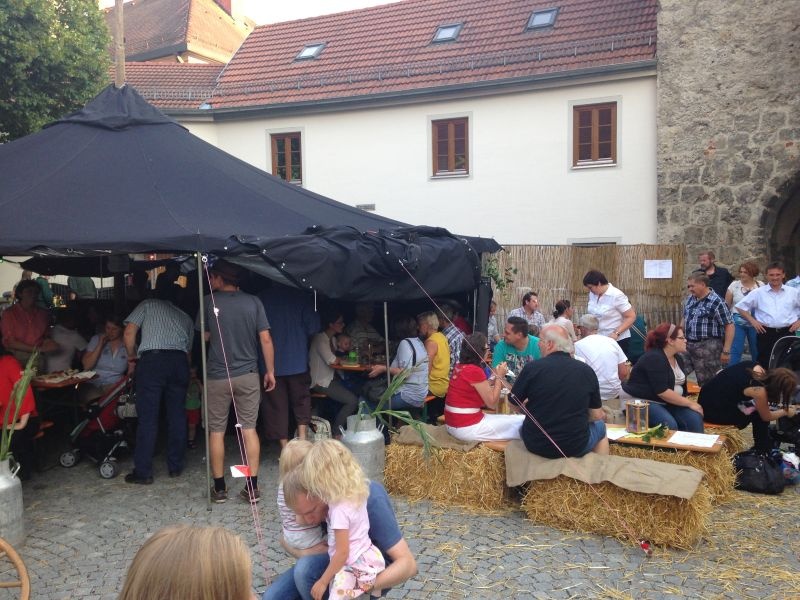 | Alljährliches historisches Markttreiben rund um die Pfarrkirche Rotthalmünster. | ||